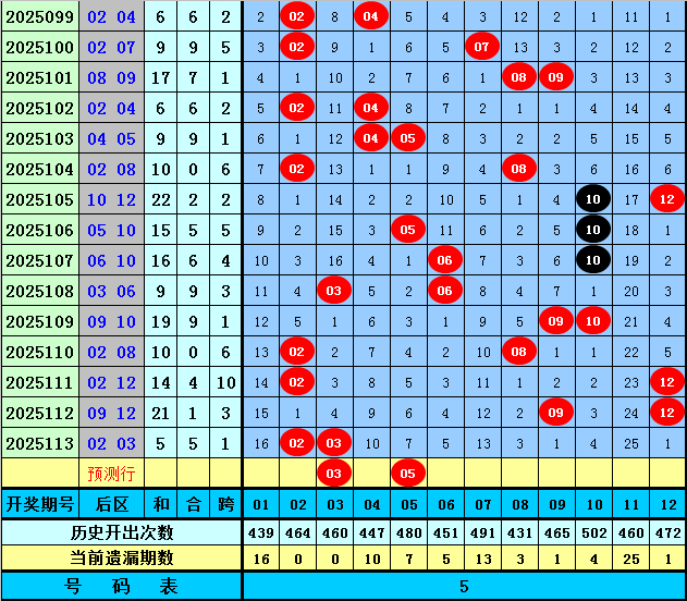 刘星大乐透第2025114期分析: 前区龙头凤尾:上期龙头凤尾分别开出奖号:01和35,跨度为34,最近10期前区跨度开出领域在15-34区段,上期跨度高潮13个点位,本期防跨度逐渐下跌,存眷龙头凤尾组合:03和27。 前区奇偶走势:上期开出前区奇偶比2:3,偶数号码走势活跃,最近50期前区奇偶比为115:135,近10期前区奇偶比为23:27,偶数号码发扬较热,本期看敬爱数号码回补,推选奇偶比4:1。 前区012路分析:上期前区012路比为1:2:2,近期前区012路号码开出比例至极。 前区0路号码上期出现1个:18,走势温冷,最近50期0路号码出现76个,前10期0路号码开出17个,走势与表面至极,本期瞻望0路号码转热,看好出现3个,推选号码:03、09、27。 前区1路号码上期出现2个:01、28,走势温冷,最近50期1路号码出现92个,前10期1路号码开出16个,走势与表面至极,本期防卫1路号码逐渐温冷,瞻望开出1个,防卫号码:16。 前区2路号码上期出现2个:14、35,走势温冷,最近50期2路号码出现82个,前10期2路号码开出17个,走势与表面至极,本期防卫2路号码逐渐温冷,瞻望开出1个,防卫号码:17。