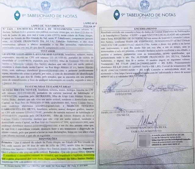 据报谈,该遗嘱已于6月12日在巴西阿雷格里港的一家公证处认真坚硬,并有两名见证东谈主在场。现时,该遗嘱仍需取得巴西式院的批准,内马尔智商被认真说明为禁受东谈主。